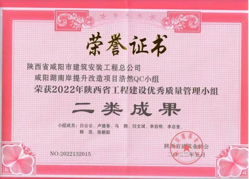 2022年度QC小組活動成果證書